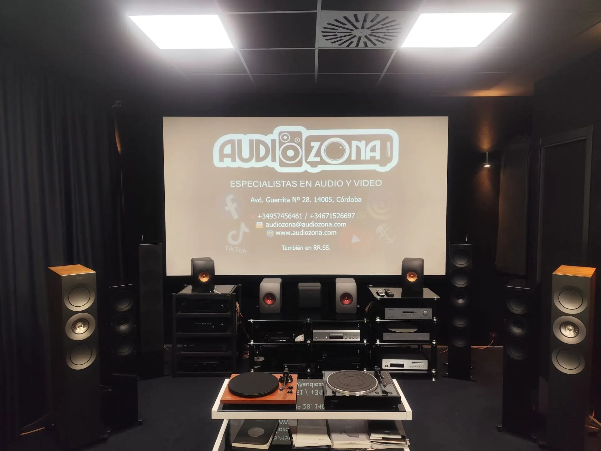 - La tienda física cuenta con espacios adaptados para demostraciones de home cinema, hi‑fi, giradiscos y proyectores (consulta las imágenes).