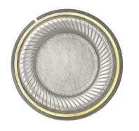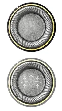La suspensión que rodea la cúpula está compuesta por un polímero semicristalino recubierto de berilio. Al aplicar el recubrimiento de berilio mediante Deposición Física de Vapor (PVD), se incrementa la rigidez y durabilidad del transductor sin añadir peso innecesario, lo que permite una respuesta transitoria rápida. Estas cualidades se ven reforzadas por las ranuras posicionadas con precisión en un ángulo de 45,5°.