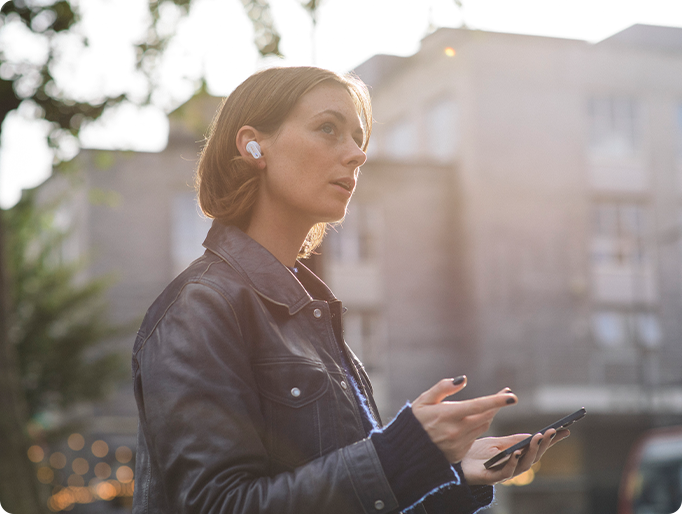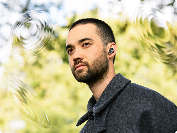 Utiliza la tecnología de cancelación de ruido True Adaptive de primera calidad, personalizable a través de la aplicación, para decidir exactamente cuánto del mundo exterior quieres oír. Con la compensación automática, cuatro micrófonos detectan automáticamente el ruido ambiental y realizan ajustes en tiempo real. O puedes seleccionar manualmente el nivel de ANC que prefieras. El tamaño y la forma del canal auditivo se detectan automáticamente para compensar las fugas de sonido. Cuando no quieras interrumpir el ritmo, aíslate por completo de tu entorno con la cancelación de ruido, que se adapta automáticamente al nivel de ruido que te rodee.