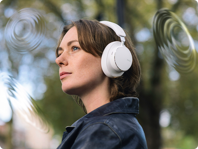Abre la aplicación AKG Headphones y utiliza la configuración de voz para ajustar la voz para reuniones, presentaciones o incluso actuaciones. También puedes utilizar la configuración de sonido para añadir más graves o agudos a las voces de otras personas. Un optimizador de nivel de sonido ajusta el volumen de los demás, por lo que nunca tendrás que pedir a alguien que hable más fuerte ni decirle que habla demasiado alto. Por último, Voice Aware ajusta el volumen de tu voz cuando hablas, para no molestar a los demás por hablar demasiado alto cuando te rodee mucha gente en una cafetería o el metro.