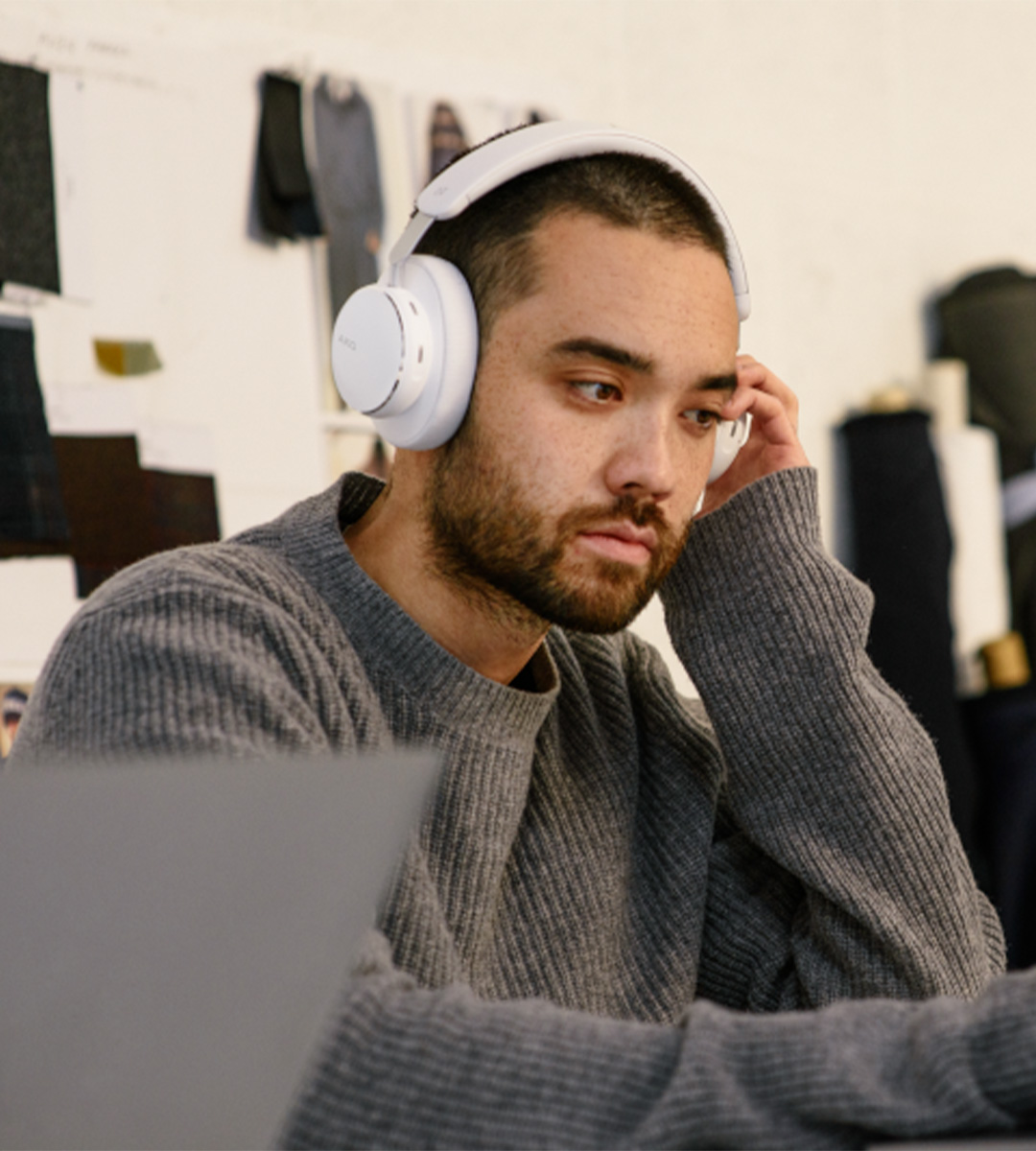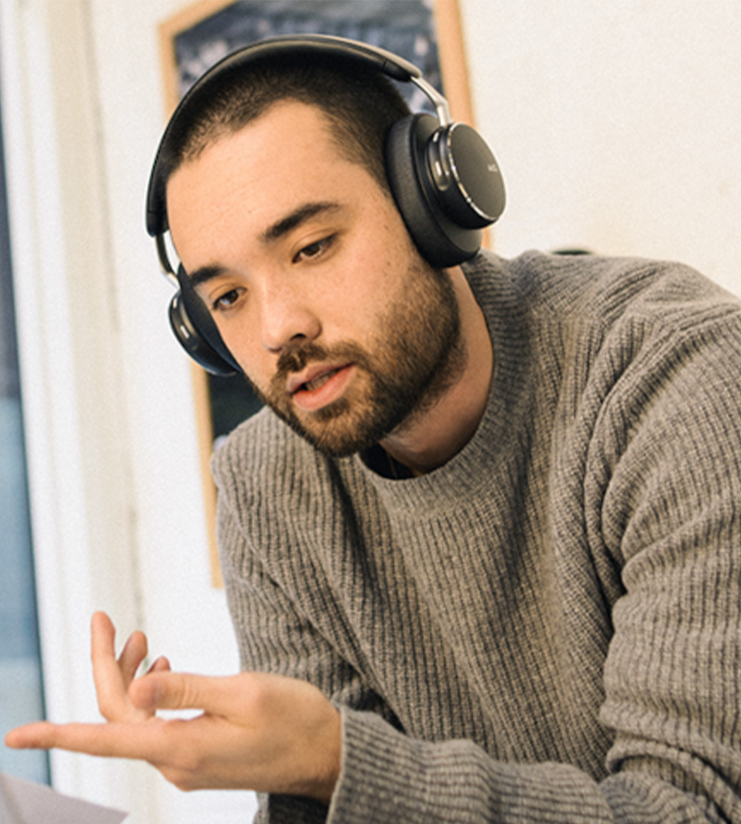 Usa la app AKG Headphones para ajustar tu voz en reuniones, presentaciones o actuaciones. Mejora la voz de los demás con ajustes de graves o agudos. El optimizador de volumen te asegura que nunca tendrás que pedirles a los demás que hablen más alto o más bajo. Voice Aware ajusta la cantidad de tu propia voz que escuchas, evitando que hables demasiado alto en entornos ruidosos como cafeterías o vagones de metro.