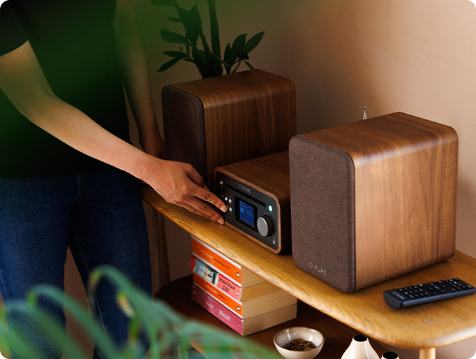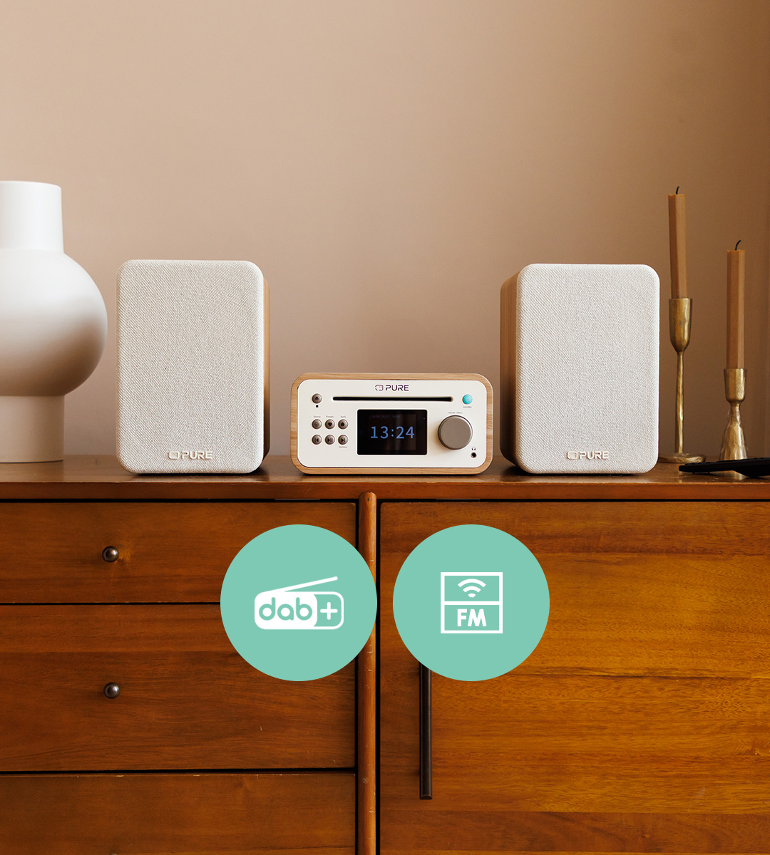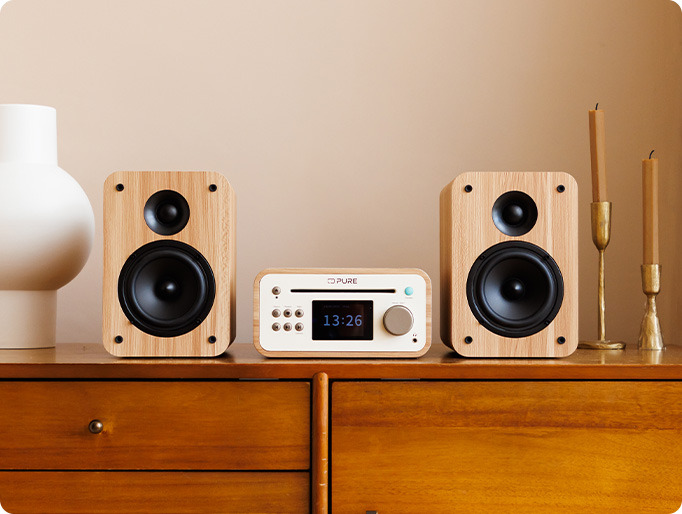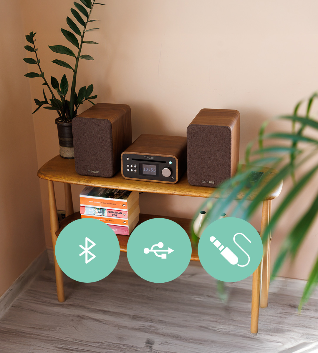 Las noticias de la mañana en FM, las listas de reproducción para el trabajo a través de Bluetooth y un CD para cenar con amigos: este sistema te acompaña desde el amanecer hasta el anochecer. Con su forma compacta y su sonido completo, es perfecto para el salón, la oficina en casa o cualquier lugar donde te relajes.