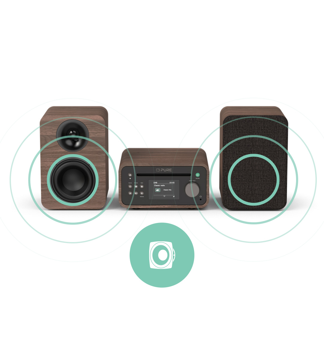 - Estéreo real con altavoces de 2 x 20 W y woofers de 4 pulgadas - Radio DAB+ y FM