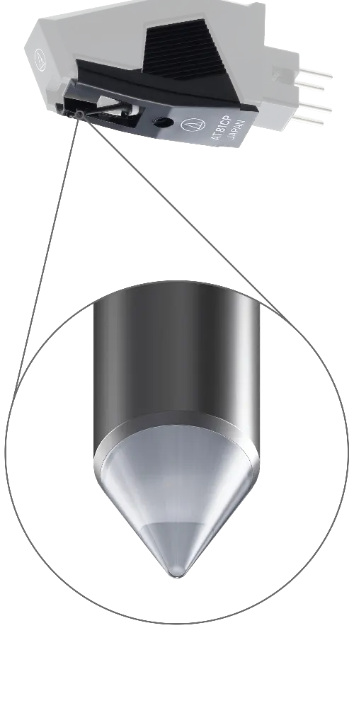 Aguja de recambio ATN81CP para la cápsula AT81CP con punta cónica, vástago redondo unido y una fuerza de seguimiento de 1,0 a 1,5 gr (1,25 gr estándar).