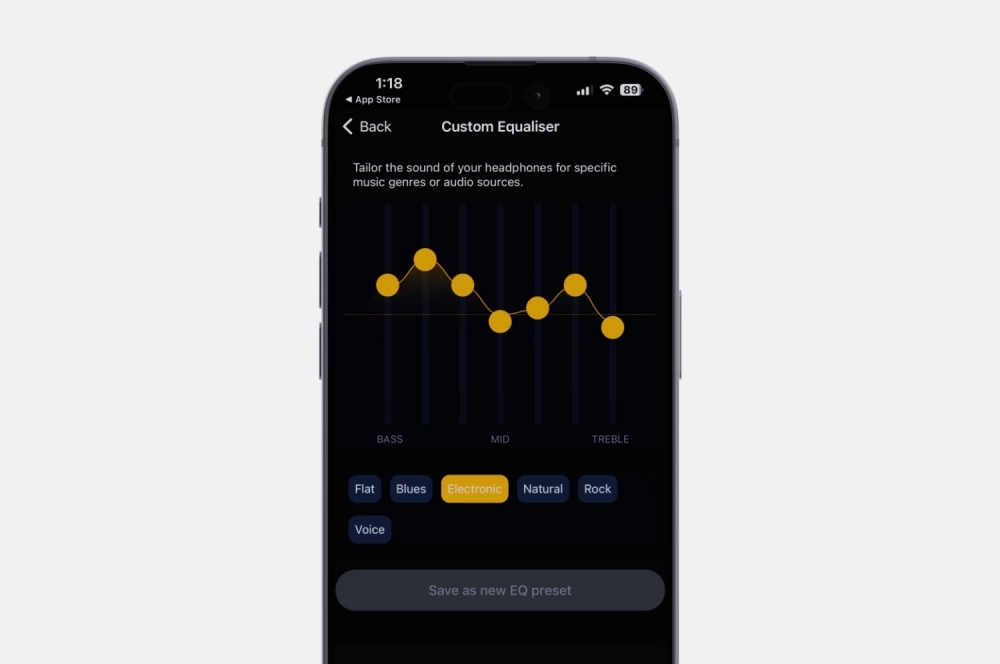 Hemos ajustado los P100 para ofrecer agudos precisos y graves dinámicos, pero entendemos que quizás quieras hacer lo que quieras. Personaliza tu experiencia de escucha con Melomania Connect. Crea tus propios ajustes preestablecidos o elige entre seis perfiles seleccionados por expertos.