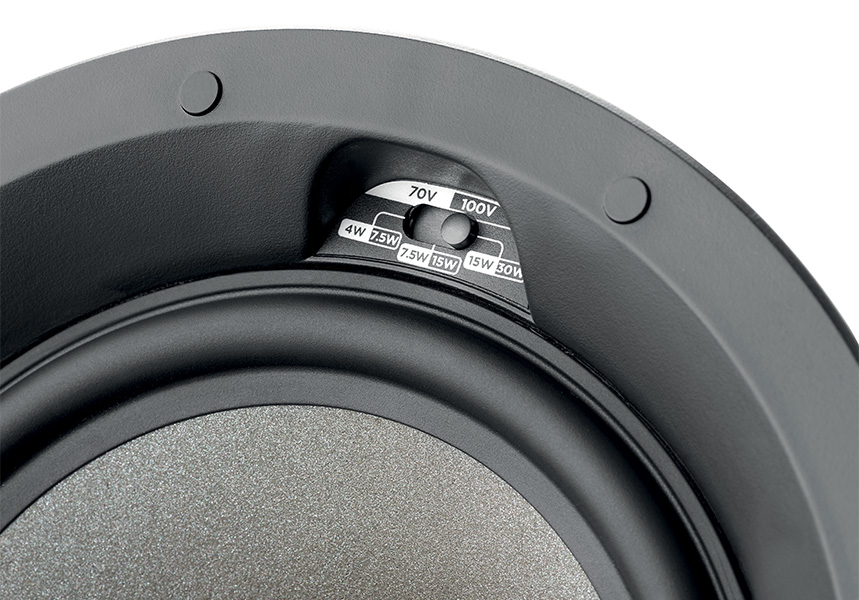 Los altavoces 100-T Series incorporan un transformador de potencia ajustable que adapta la potencia de cada altavoz, lo que permite encadenarlos en una instalación de 70 V/100 V. Garantizan un sonido claro e inteligible en grandes espacios, al tiempo que minimizan el número de canales de amplificación necesarios.