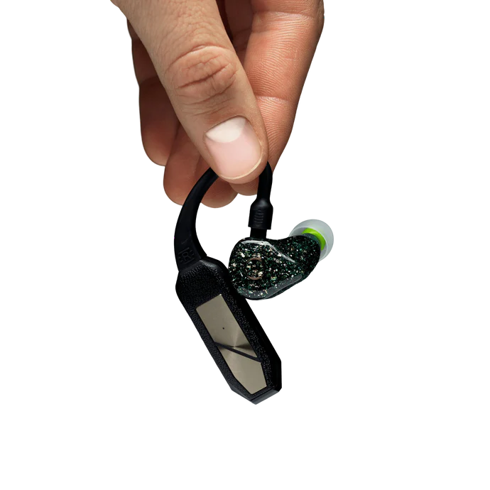 Usar un par de auriculares GO es sencillo. Primero, desconecte el cable de sus IEM favoritos y conecte los auriculares a los auriculares izquierdo y derecho. Luego, empareje los auriculares con su dispositivo fuente (un teléfono inteligente, por ejemplo) y enganche las presillas de diseño ergonómico alrededor de sus orejas para garantizar un ajuste cómodo... el resultado es un sonido de auriculares TWS (True Wireless Stereo) inigualable.