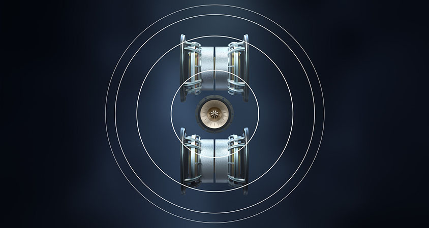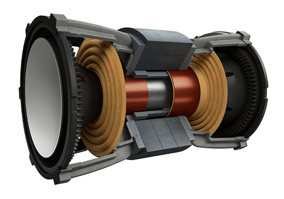 El innovador sistema Uni-Core™ supera los compromisos de rendimiento al colocar transductores de cancelación de fuerza en un recinto más pequeño. Uni-Core™ combina ambos transductores consecutivos en un solo sistema de motor magnético. Las bobinas de voz superpuestas y dispuestas concéntricamente permiten una mayor excursión del transductor que en otros diseños de cancelación de fuerza, desbloqueando más salida y profundidad desde menos espacio.