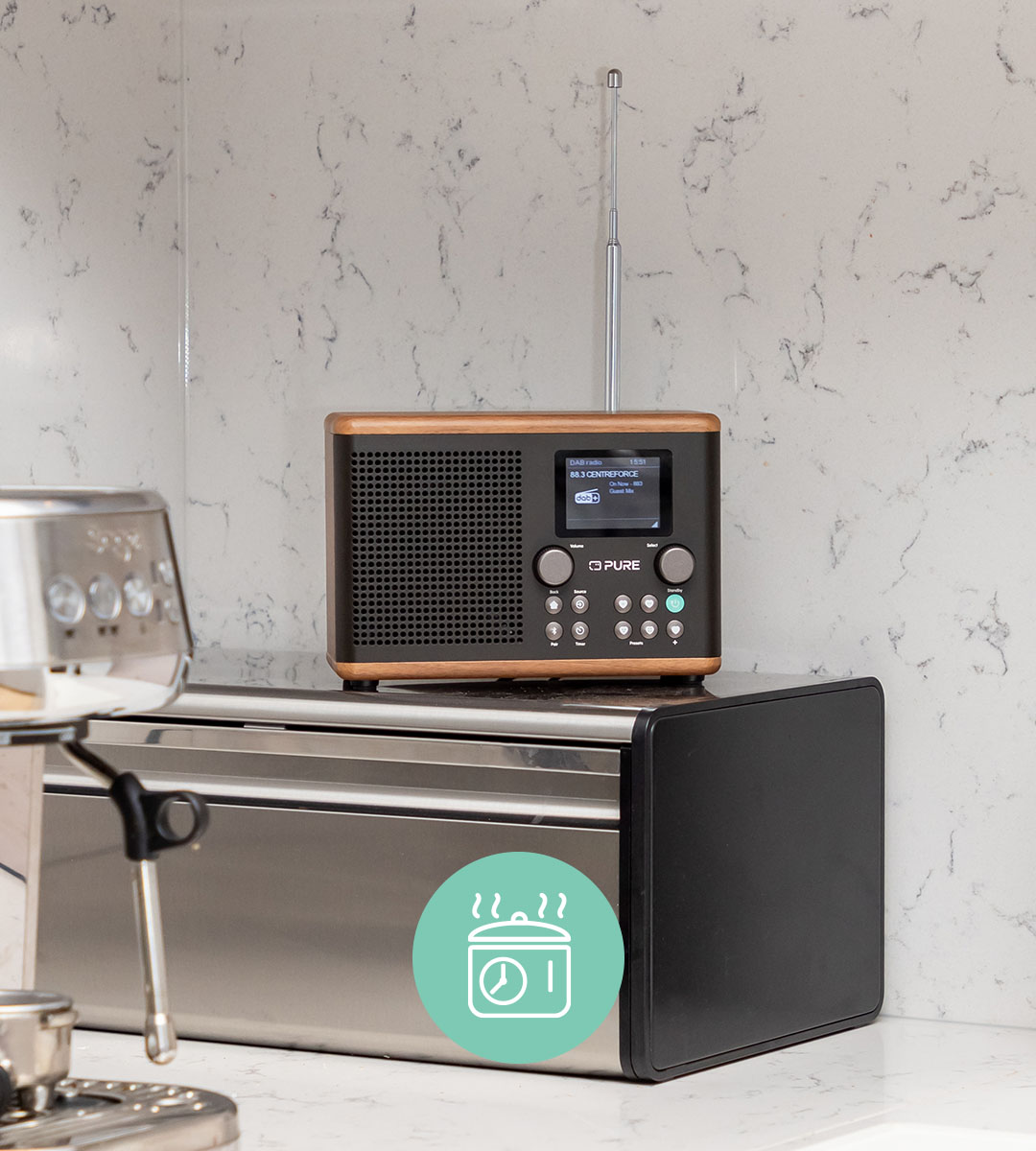 El Classic H4 es mucho más que una radio, es tu versátil compañero de cocina. Establece tiempos de cocción precisos con el temporizador de cocina y no vuelvas a cocer en exceso los huevos del desayuno. Utiliza la alarma para que te recuerde la hora a la que tienes que ir al colegio o deja que el temporizador de reposo baje automáticamente el volumen por la noche. Gracias a los botones de presintonía, accederás sin esfuerzo a hasta 40 emisoras favoritas y siempre tendrás a mano las que más te gustan.