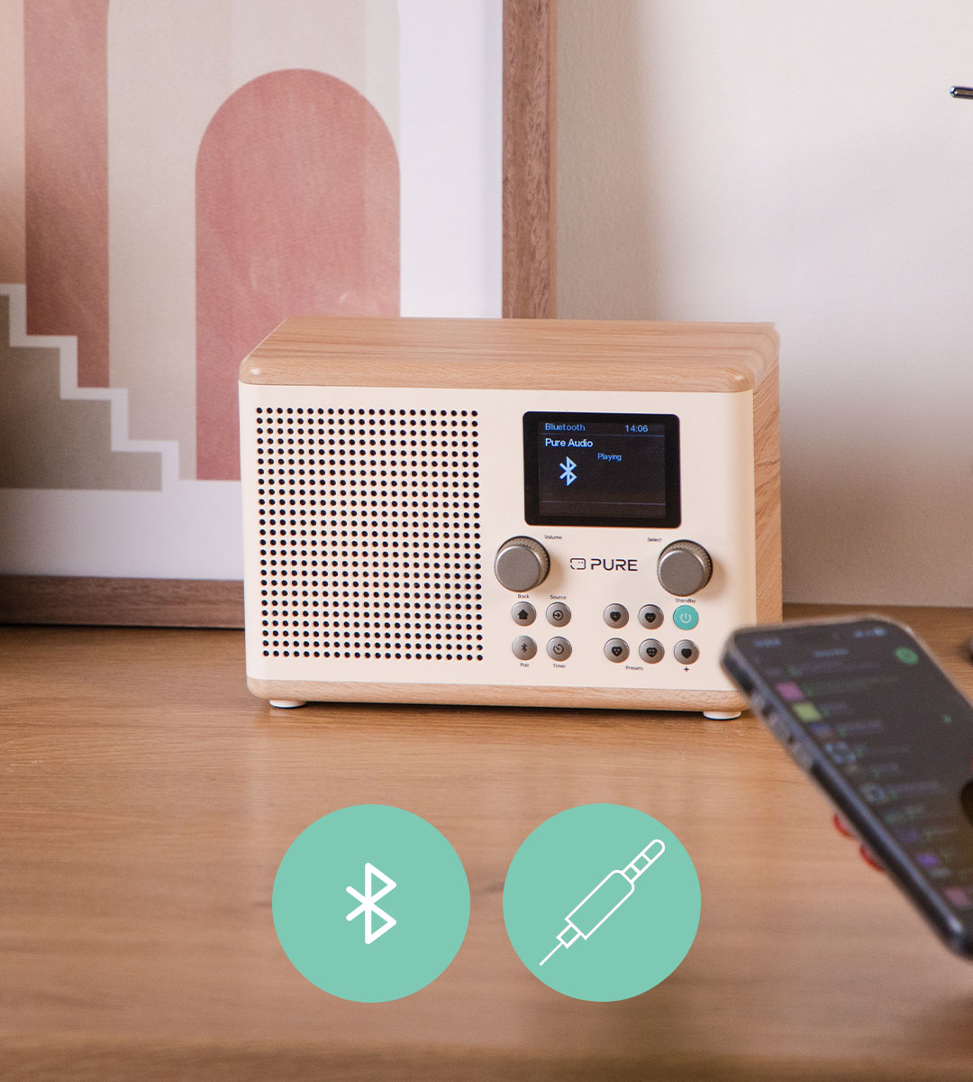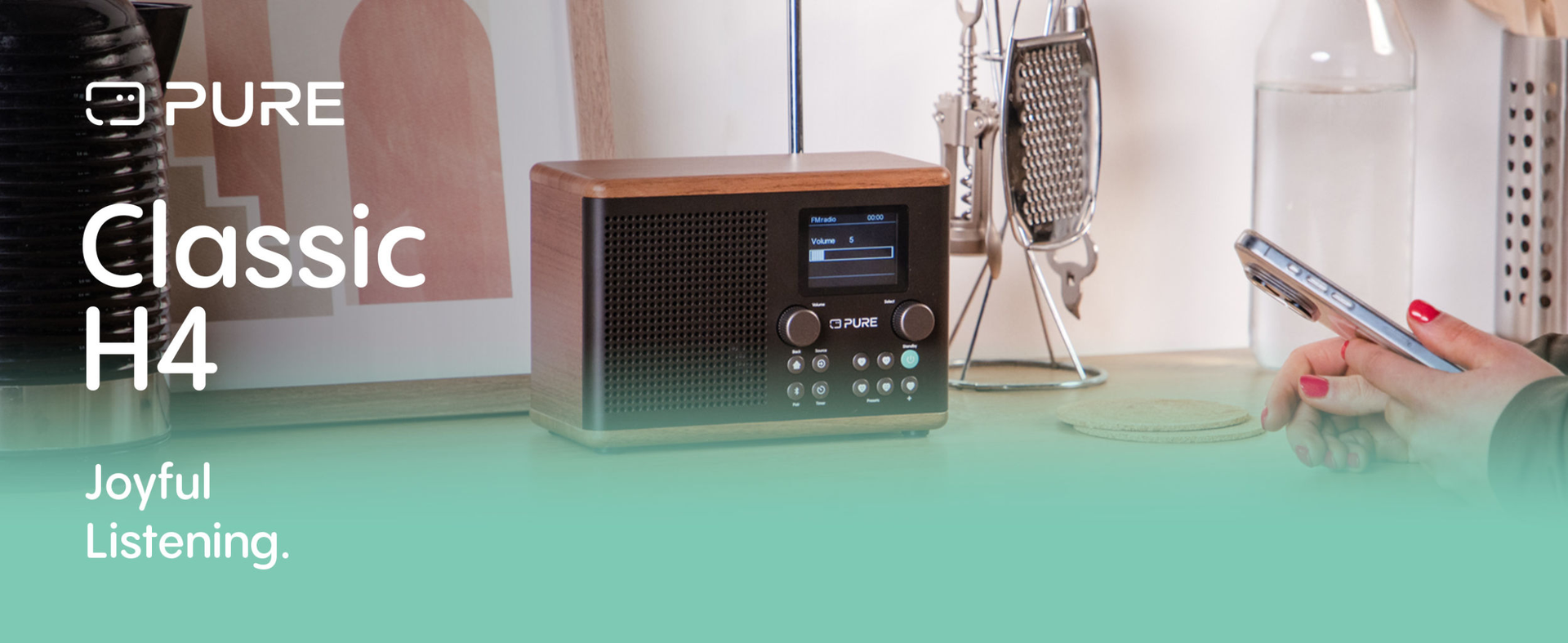 El nuevo Pure Classic H4 ofrece un sonido mejorado, mayor conectividad y un acabado en madera moderno que se integra a la perfección en tu hogar. Gracias a su diseño compacto y versátil, es perfecto para cualquier habitación.