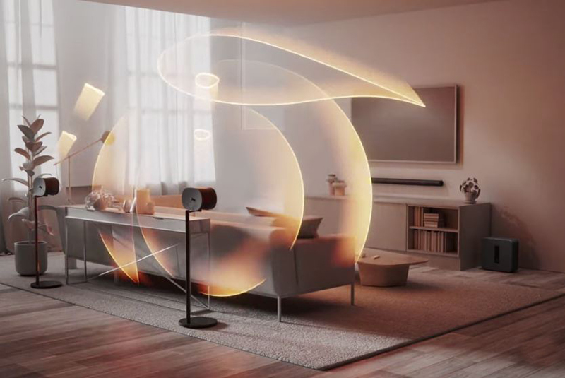 - Los altavoces que apuntan hacia arriba reflejan el sonido hacia el techo para crear una experiencia de audio espacial superrealista.