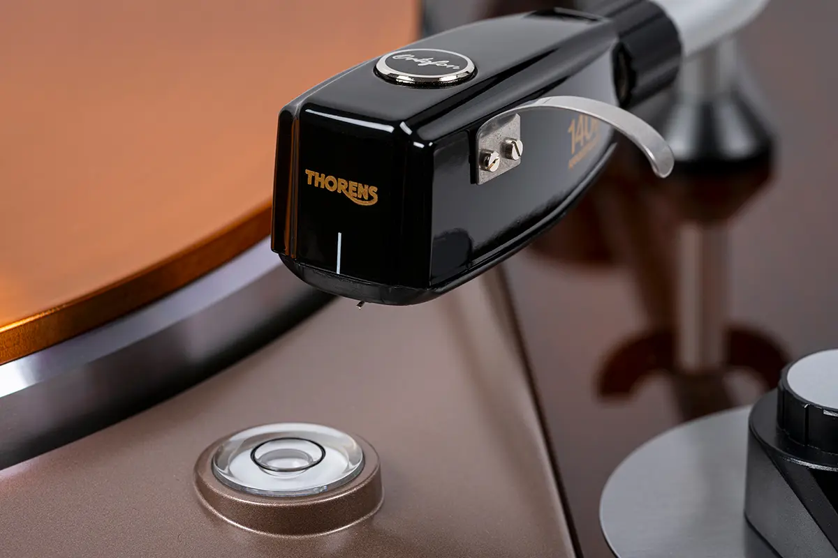 Menos evidente que el plato giratorio, pero igualmente gratificante, es el nuevo cableado del brazo TP 124. En la versión Aniversario, un cable de plata de alta pureza conecta la cápsula a las salidas. Creemos que este nuevo cableado tiene un impacto particularmente positivo con cápsulas de bobina móvil (MC) de baja salida. Esta familia de sistemas también incluye la tercera mejora exclusiva del Aniversario: una versión especial de nuestra SPU 124, fabricada por el fabricante danés Ortofon con bobinas de plata pura. Incluso convencimos a Ortofon para que fabricara la clásica carcasa de la cápsula con el material tradicional, la baquelita, en lugar del nuevo compuesto de fibra y resina. Quienes deseen añadir una a su colección SPU se llevarán una decepción: esta cápsula MC de edición limitada y de primera categoría solo está disponible en un paquete con el TD 124 DD 140 Aniversario.
