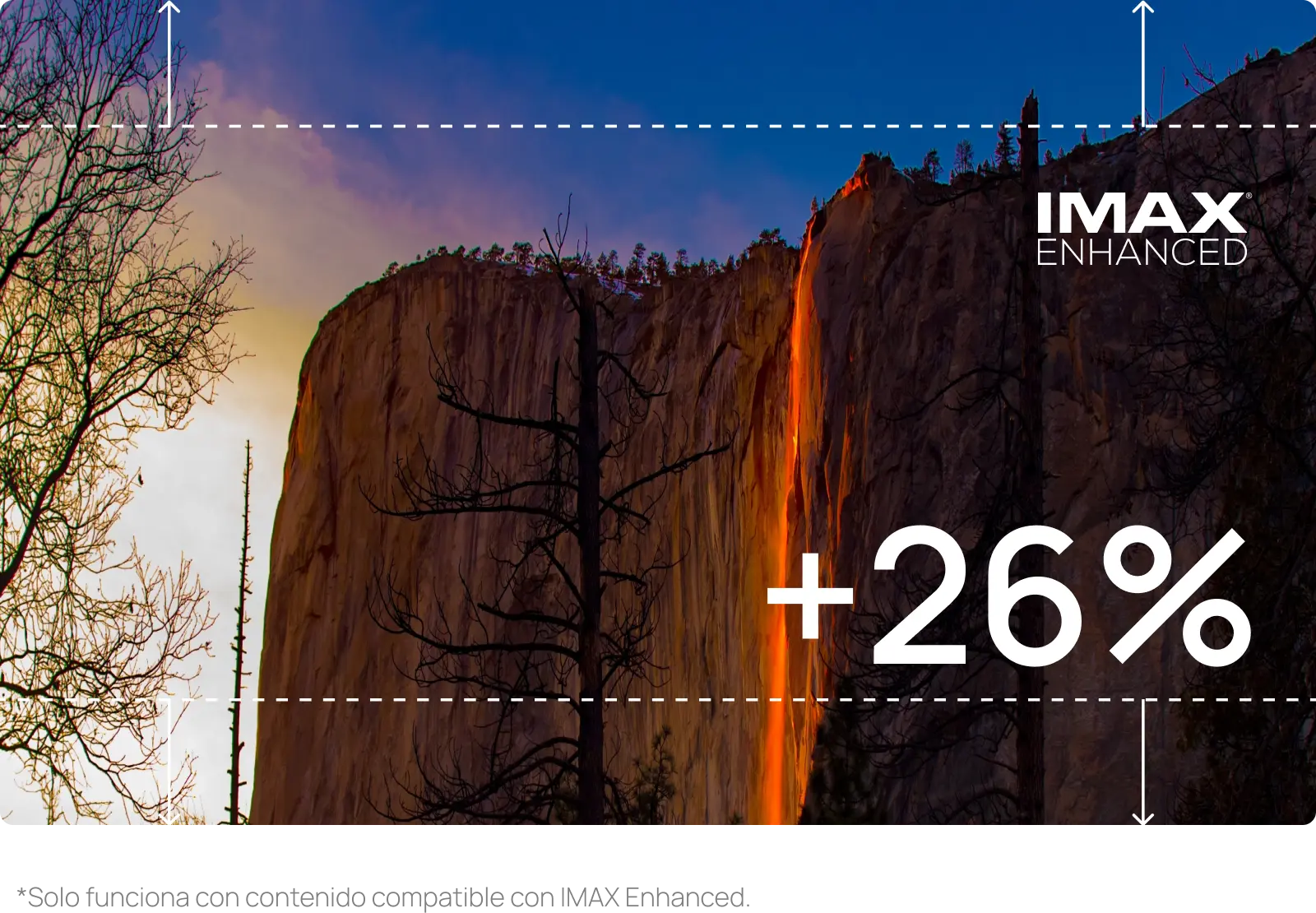 Lleve a casa la incomparable experiencia de entretenimiento de IMAX con IMAX Enhanced. Sumérgete en una brillantez 4K en una pantalla un 26 % más grande.