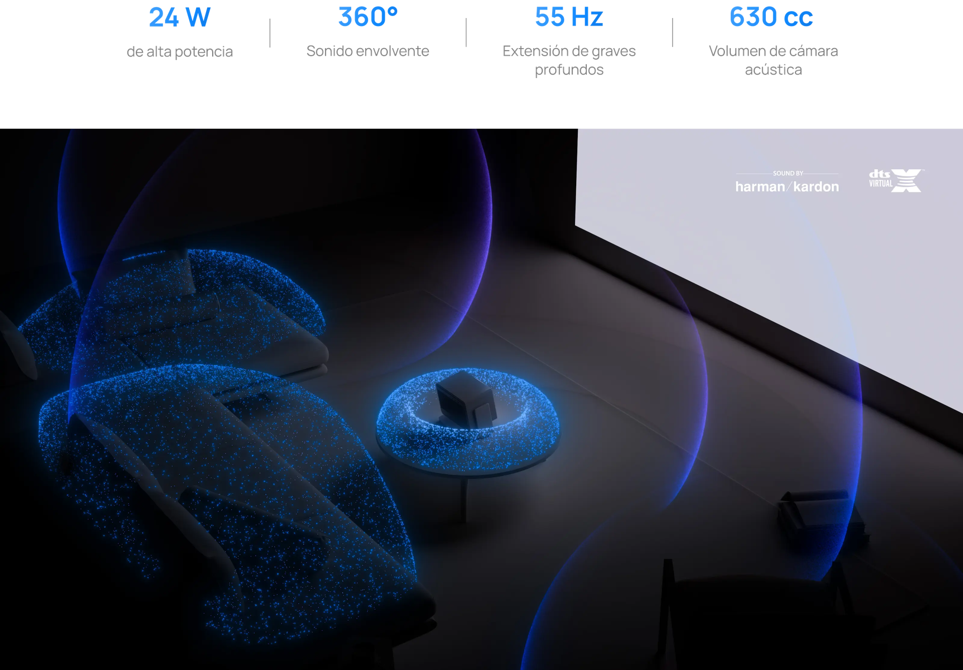 Los altavoces premium Harman Kardon están integrados para ofrecer un sonido rico que llena toda la sala, sin necesidad de configuración externa.