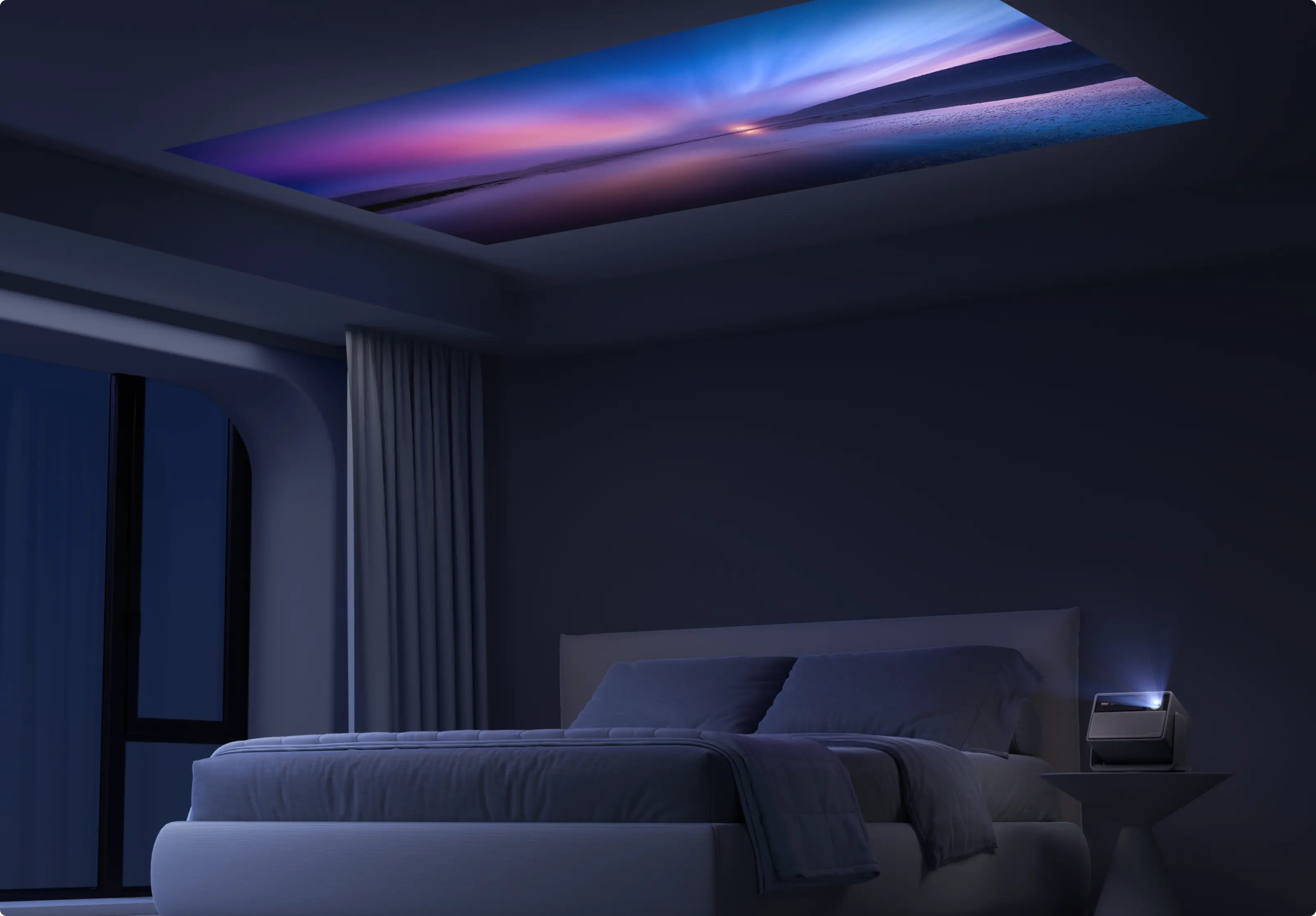 Puede ajustar el proyector libremente, sin soportes ni complicadas configuraciones. El soporte integrado se inclina según sus necesidades, incluso para proyectar directamente en el techo.