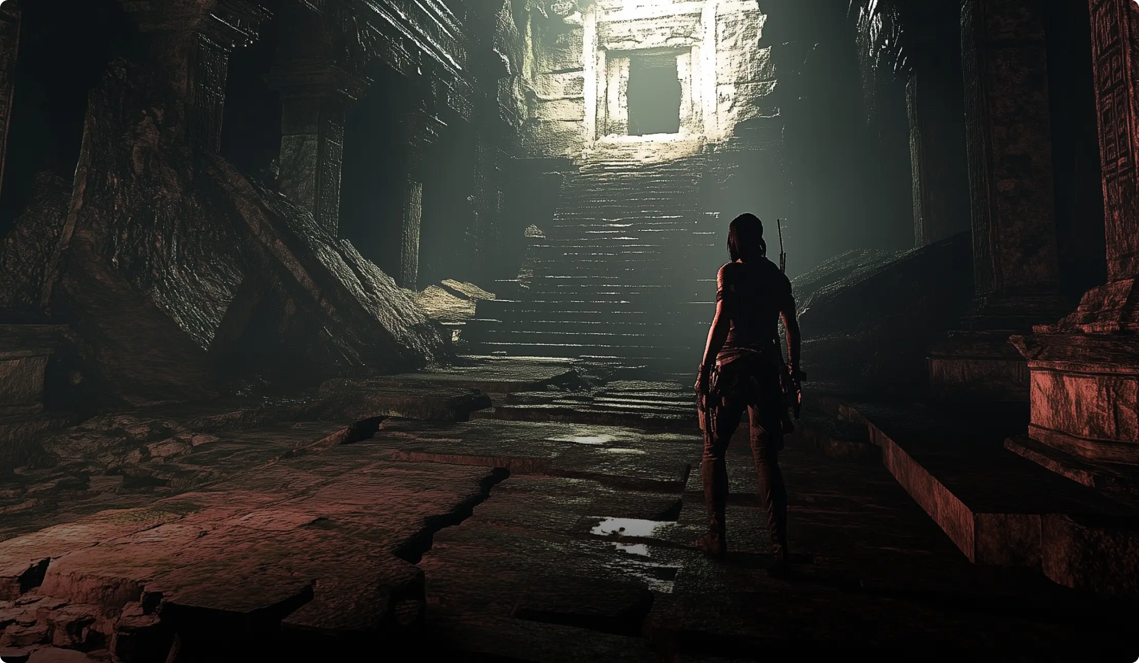 Configuración cinemática que realza las sombras y el contraste para una experiencia de sigilo e historia totalmente inmersiva.
