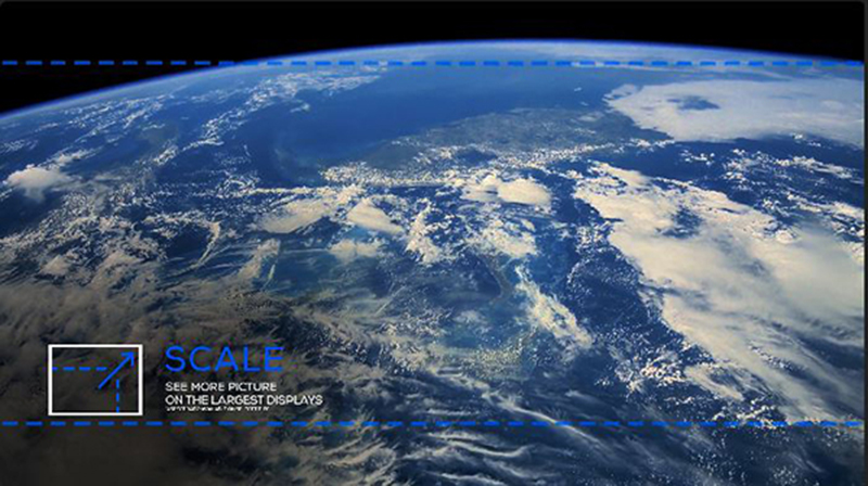 El proyector HORIZON S Max amplía automáticamente las películas con una relación de aspecto 21:9 al proyectarlas desde un lateral, proporcionando una experiencia visual más amplia y envolvente.